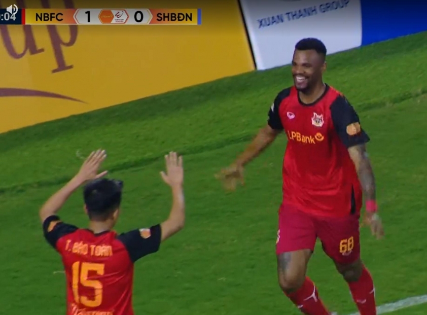 The momentum gradually shifted towards Ninh Bình, and the opening goal arrived in the 21st minute. From Tiến Anh's cross from the right flank, Gustavo rose high to head accurately, putting the hosts ahead. After the goal, Ninh Bình continued to control the game, while Đà Nẵng struggled to build attacks.